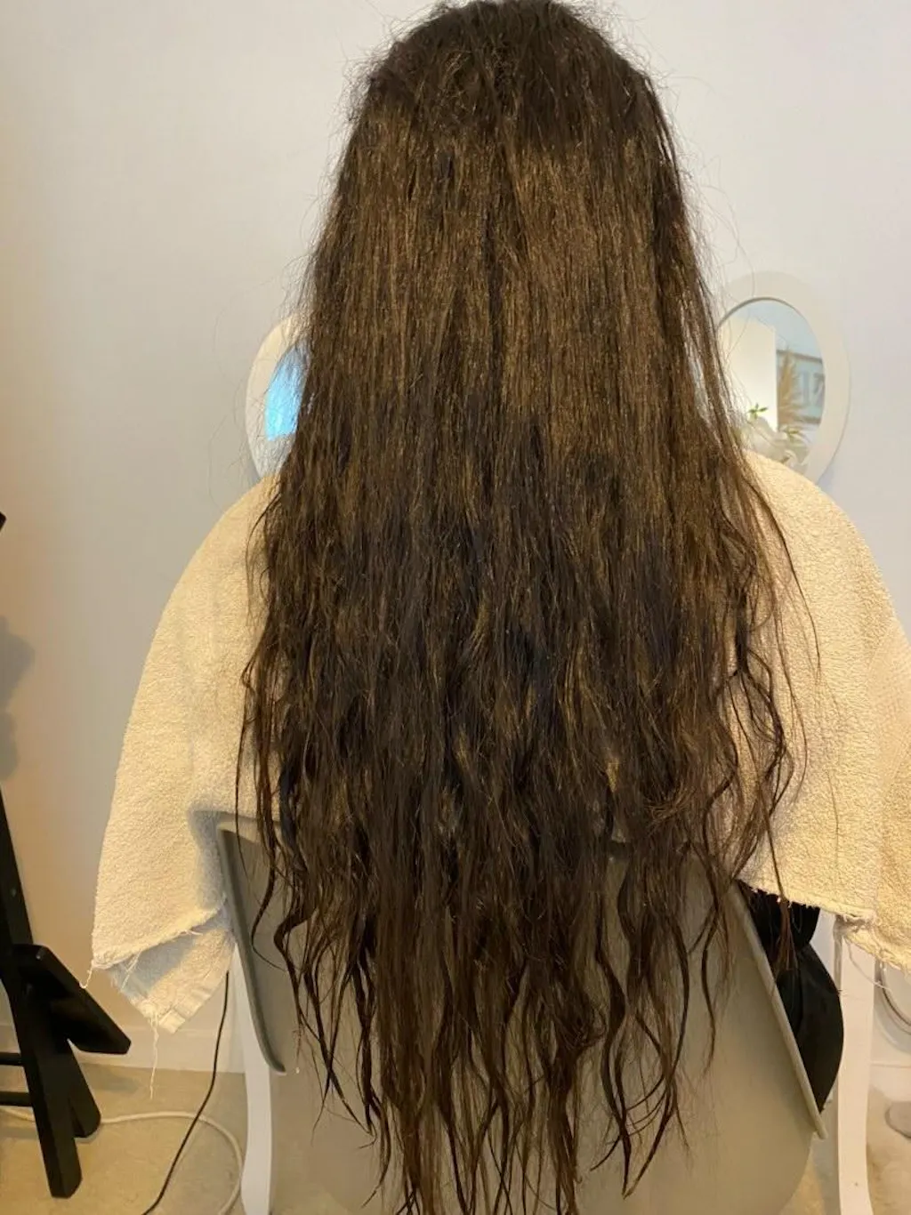 - Sécher bien vos cheveux avec une serviette de manière à retirer tout l’excès d’eau et sécher les avec un sèche-cheveux (les cheveux doivent restés légèrement humides)